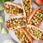 Grilled Hot Dogs with Peach-Jalapeño Salsa