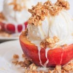 Grilled Peach Crisp Sundaes with Cinnamon-Honey Drizzle