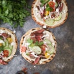 If you’re not into steak, top your flatbreads with grilled chicken or shrimp. You can play with flavored hummus if you’d like, and feel free to mix up the fresh herbs or add some greens (I love arugula) to the vegetable mix. I occasionally sub goat cheese for feta because I dig its creamy tang, but the cheese is really gilding the lily here, so you can always leave it out.