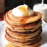 - Serve pancakes warmed topped with Maple-Bourbon Whipped Cream and maple syrup.