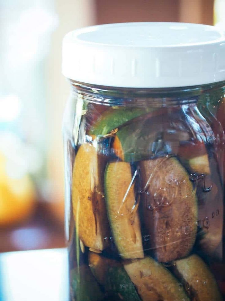 7. Transfer the jars to the fridge and pickle for at least one week to develop the flavor. The pickles will keep in the fridge for about one month.