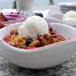 Summer Berry Crisp is the perfect seasonal dessert. It’s indulgent without being overly heavy, and it’s laughably simple to make. You can easily prep it in advance and then pop it in the oven when you’re ready to eat, and it looks and smells unreal. Topped with vanilla ice cream, it’s pure, unadulterated berry bliss. You could also bake Summer Berry Crisp in individual ramekins for a cute dinner party dessert. I wanted to try this, but I could not find any ramekins in the fantasy kitchen. (A deep fryer and three ice cream makers, yes, but no ramekins.) For the record, this crisp also tastes pretty great cold, and I would highly recommend getting after it for breakfast with a little yogurt. Please make it as soon as possible. I need everyone to get on my happiness level.