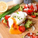 Sweet potato and creamy avocado are obviously a foolproof combo, but adding some crisped prosciutto, cherry tomatoes, shaved Parmesan, and chives will blow yo’ mind. It’s the ideal anytime meal, but it’s definitely impressive enough to serve at your next fancy brunch, so keep that in mind. And if you enjoy #yolkporn as much as I do, I highly recommend getting a poached egg involved. Do ittttt.