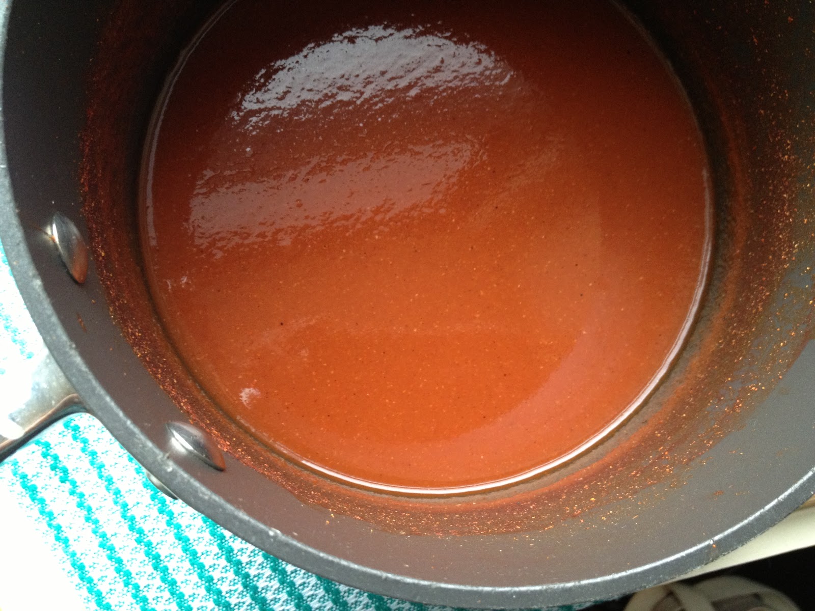 - While your chicken is cooking, get going on your enchilada sauce. Combine the tomato sauce, chicken stock, cumin, Mexican chili powder, garlic powder, and Cholula in a medium pot. Bring to a boil, then lower to a simmer. Simmer for 10 minutes to allow the flavors to combine. Salt to taste. Set your sauce aside until ready to use.