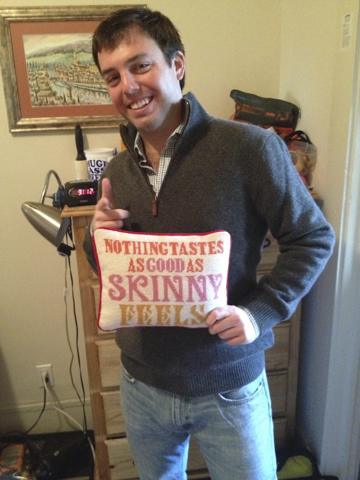 I am very proud to report that the dude weighed in at a lean 189 pounds this morning. This is down from a “hefty” 205 pounds on February 1. To be fair, Logan’s starting weight was recorded the day after his return from Hippie Fest 2013, so there was undoubtedly a significant amount of all-inclusive bloat involved. (I say this to prevent future angry comments from dudes who expect to lose 16 pounds a month on The Dude Diet. Get real.) Regardless, Logan has lost approximately 7% of his body weight, and I couldn’t be more thrilled. This is a major Dude Diet milestone, and more importantly, I am clearly a miracle-worker.
