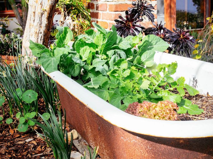 Back in my old garden in California, it actually would’ve been pretty challenging to dig anything, as I started one of my new garden beds in an old bathtub. A bathtub in my backyard!